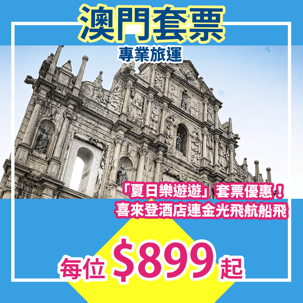 專業旅運推出「夏日樂遊遊」澳門2天自由行套票優惠