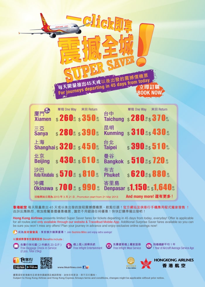 繼續一click即享!香港往返台中只需$370、曼谷$720、布吉$880、沖繩$990、沙巴$1,210、峇里島$1,640 – 香港航空