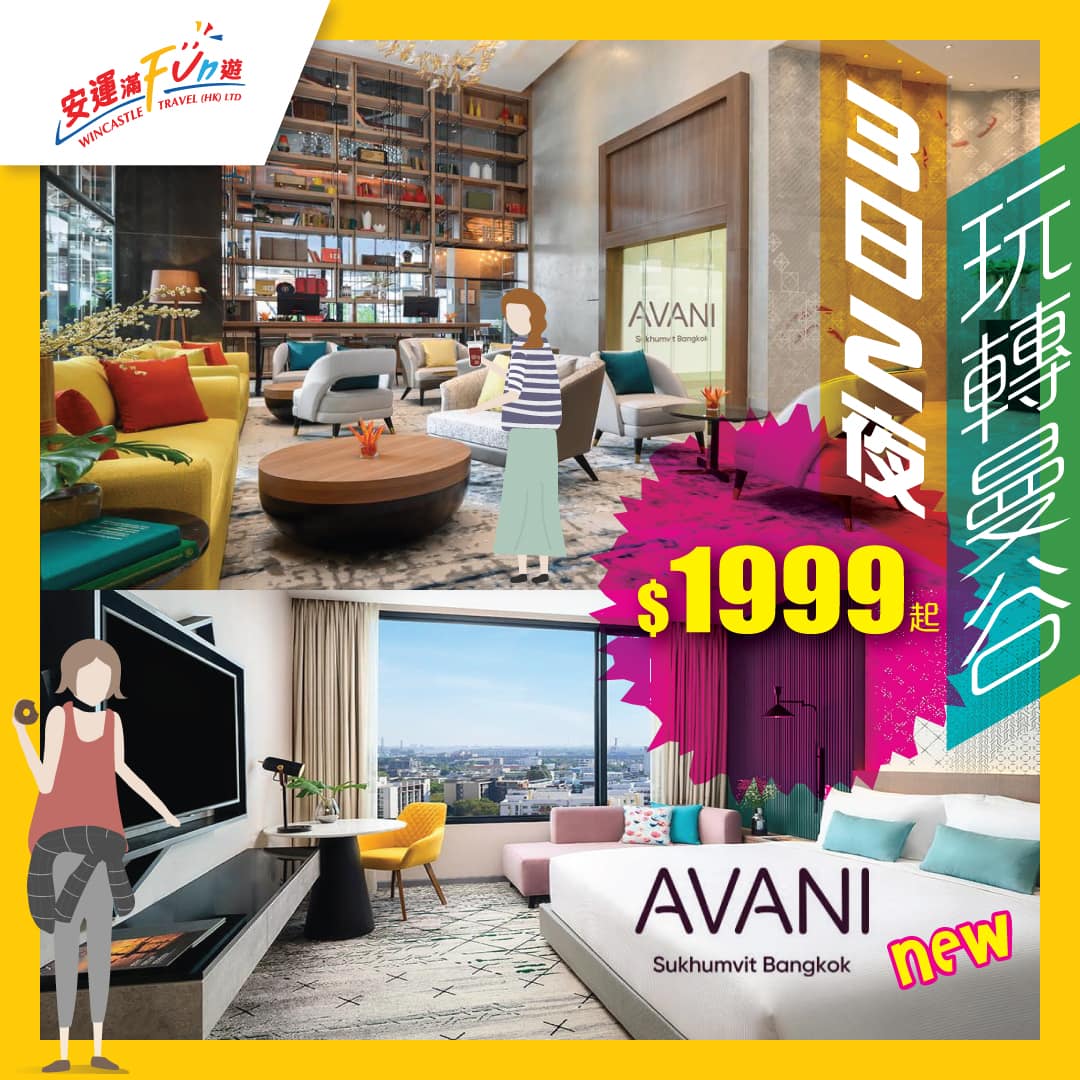 泰航來回曼谷機票+天天早餐,2晚Avani Room每人只需$1,999起,連稅$2,770起;Avani Skyline每人只需$2,099起,連稅$2,870起