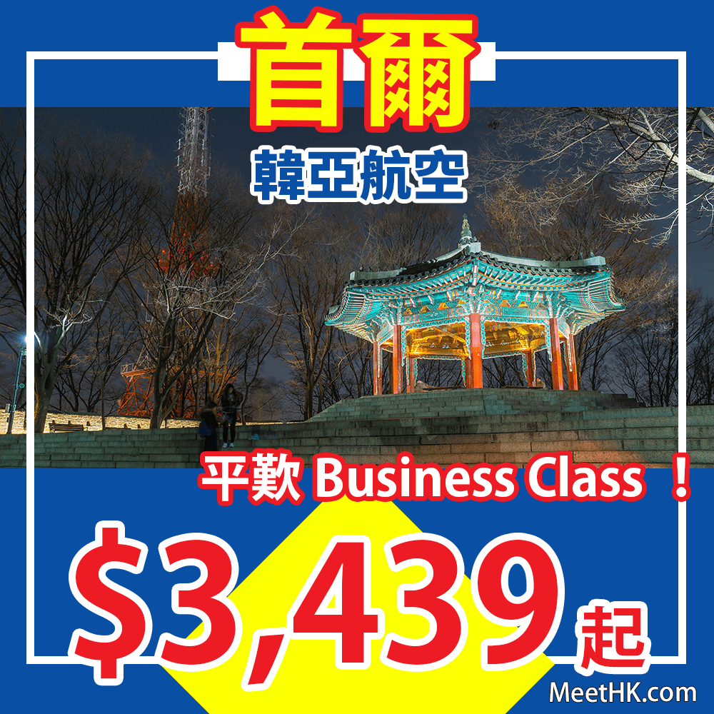 韓亞平歎Business Class!連稅四千二!12月31日前出發!可凌晨機去晩機返!香港往返首爾商務艙只需$3,439起 – 韓亞航空 (優惠至8月15日)