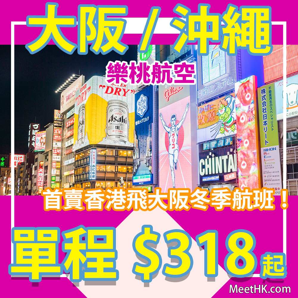盛夏優惠!明年1月16日前出發!香港飛沖繩單程只需$318起,大阪$348起 – 樂桃航空 (優惠至8月12日)