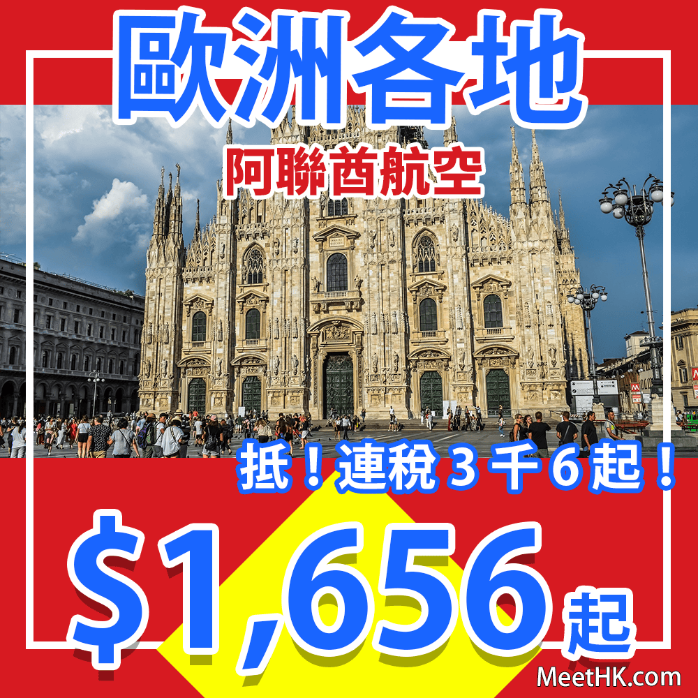抵!坐阿聯酋航空飛歐洲!連稅3千6起!明年5月前出發!可以Open Jaw!香港往返歐洲各地只需$1,656起(可stopover杜拜) – 阿聯酋航空 Emirates (優惠至8月27日)