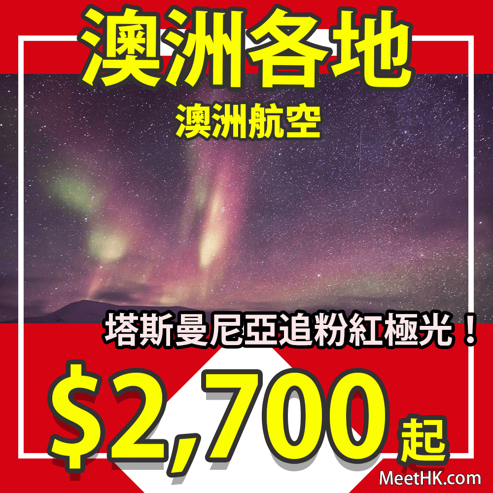 澳航澳洲各地優惠!直航連稅3千6起!塔斯曼尼亞追粉紅極光!賣到明年6月出發!香港直飛往返澳洲各地只需$2,700起 – 澳洲航空 (優惠至8月19日)