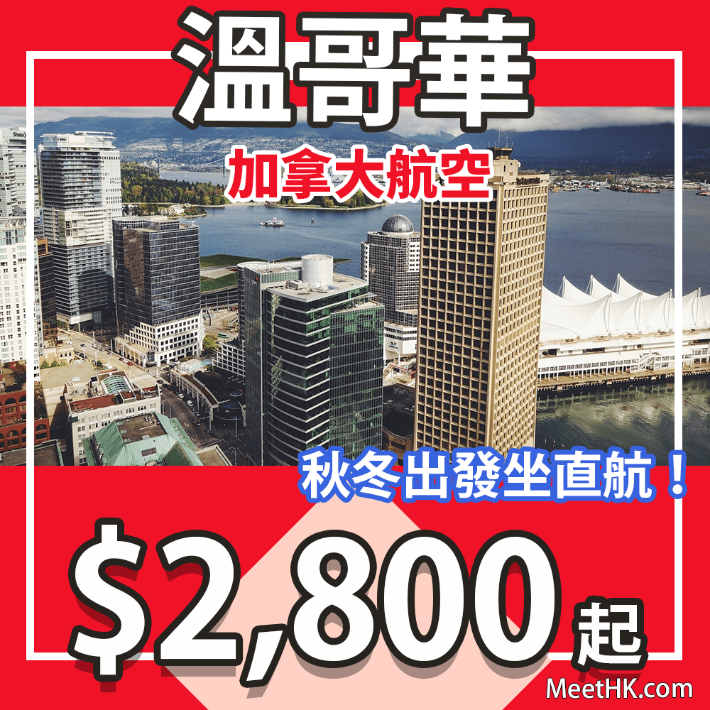 香港直航往返溫哥華只需$2,800起,連稅$4,577起