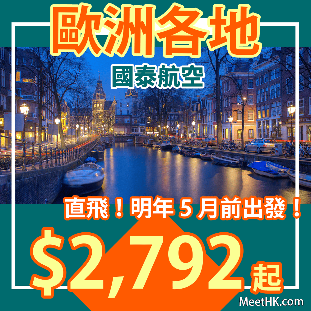 抵!國泰直飛歐洲各大熱門城市!連稅4千4起!賣到明年5月前出發!香港直航往返歐洲各地只需$2,792起 – 國泰航空 (優惠至9月6日)