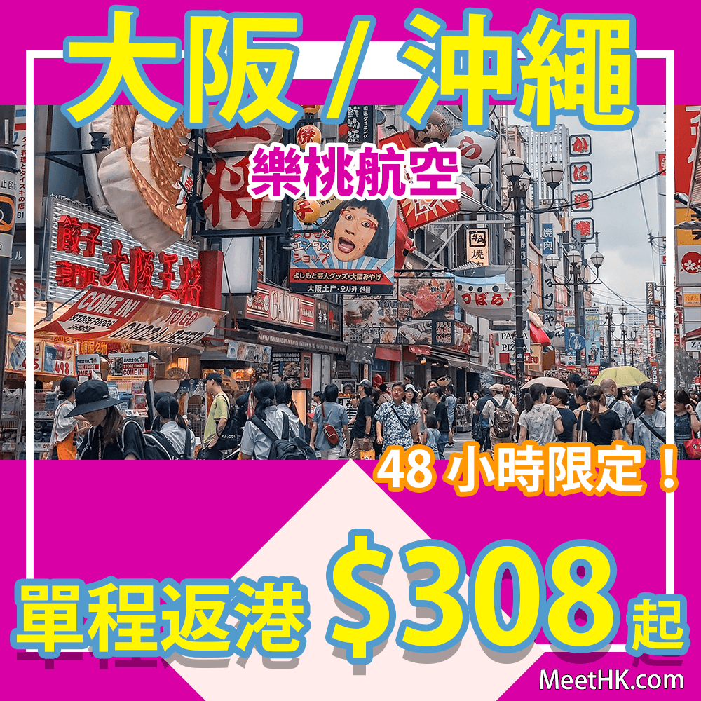 48小時限定!樂桃沖繩/大阪回程優惠!冬季航班繼續開賣!沖繩飛香港單程只需$308起,大阪$367起 – 樂桃航空 (優惠至8月23日9pm)
