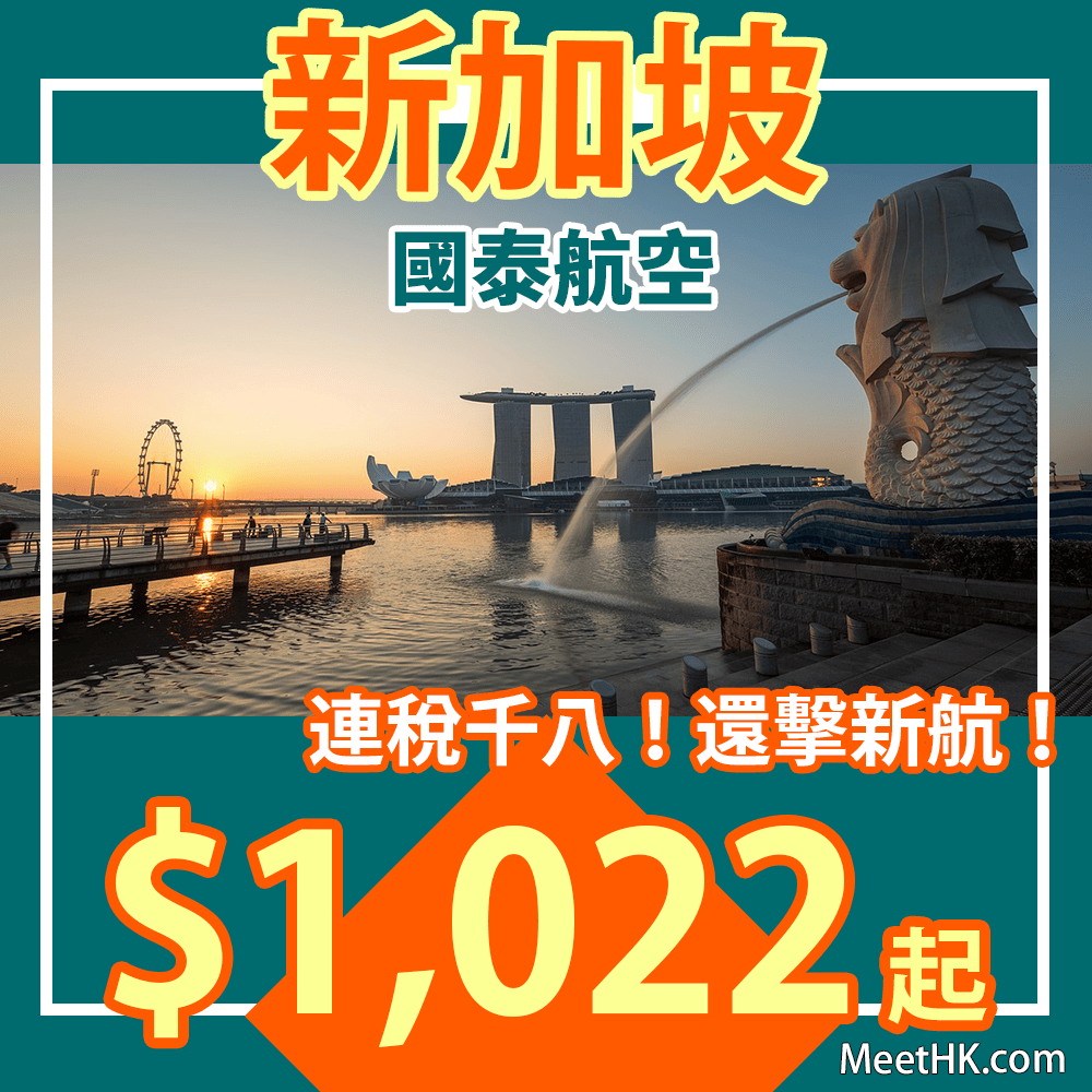 國泰飛獅城連稅千八!還擊新航!可早去晚返!賣到明年6月出發!香港往返新加坡只需$1,022起 – 國泰航空 (優惠至9月5日)