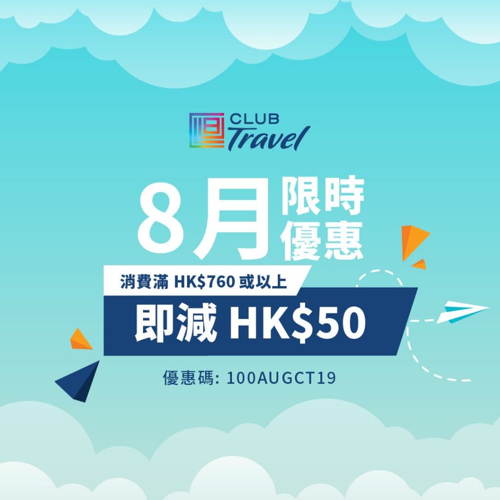 Club Travel推出全線機票滿$760(未連稅)即減$50優惠!限定一星期!名額250個!