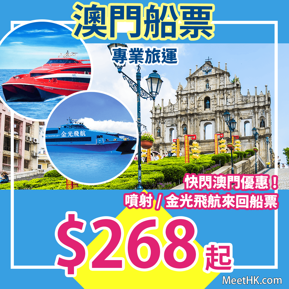 快閃澳門!平價船票再接再厲!噴射飛航/金光飛航繼續齊齊減!來回香港至澳門船票只需$268起 – 專業旅運 (優惠至8月27日)