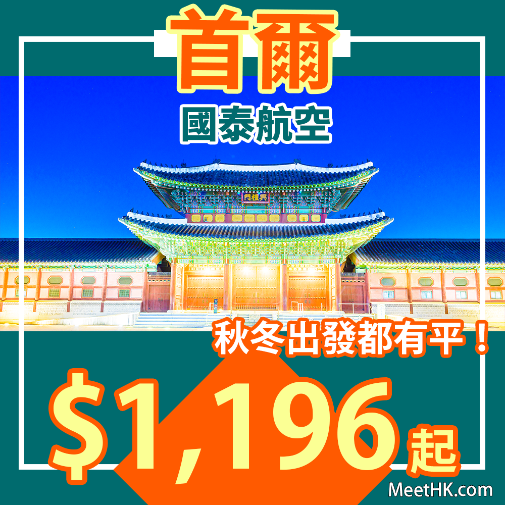 國泰飛首爾再有優惠!連稅千九!秋冬出發都有平!可凌晨/早機去晚機返!香港往返首爾只需$1,197起 – 國泰航空 (優惠至9月30日)