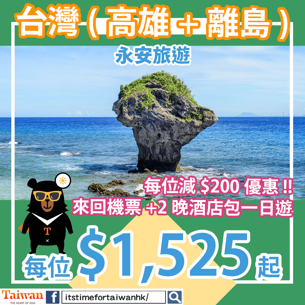 台灣套票優惠嚟啦!精選離島套票推介!每位再減$200!高雄來回機票連2晚酒店套票每人只需$1,525起 – 永安旅遊 (優惠至9月10日)