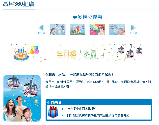 九月生日的香港居民,只要你在2011年9月1日至9月30日*期間蒞臨昂坪360,即送你一份生日大禮!