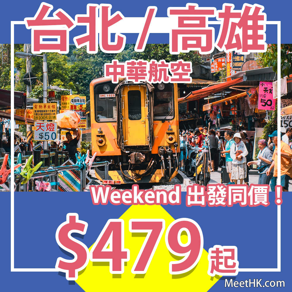 華航有平!連稅千一飛台灣!Weekend出發同價!香港往返台北$479起、高雄$530起 – 中華航空 (優惠至9月15日)