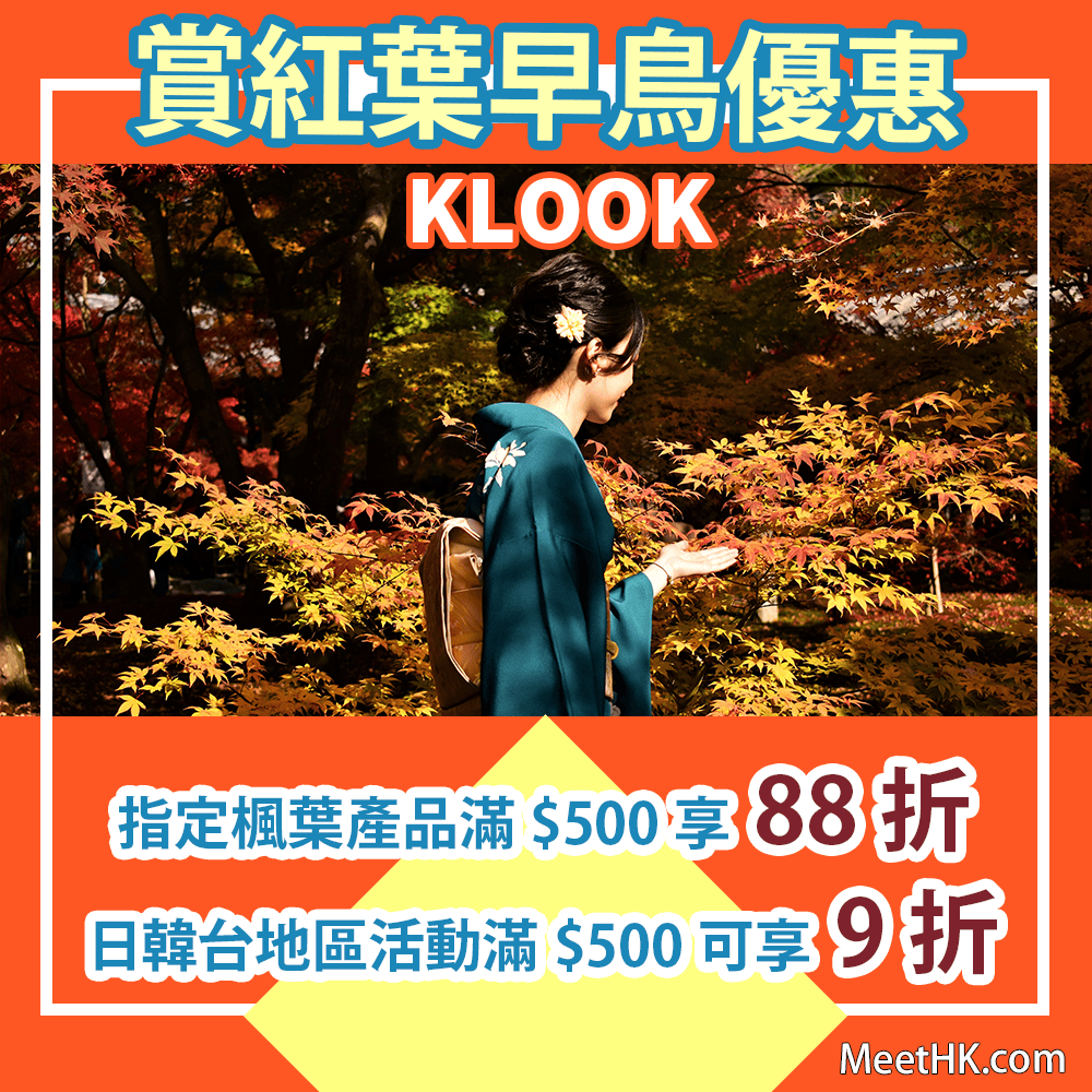 賞紅葉早鳥優惠!指定楓葉產品滿$500有88折呀!日韓台地區活動滿$500可享9折!- KLOOK