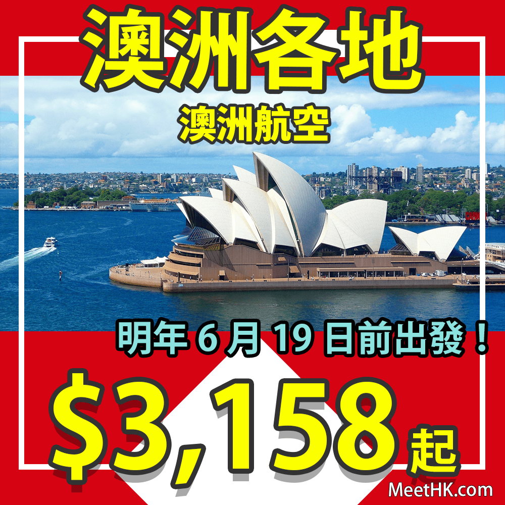 今次澳航優惠價錢一般般,可以考慮維珍澳洲航空直飛悉尼同墨爾本優惠,10月至11月出發最平連稅三千五起,優惠至9月9日,詳情:https://www.meethk.com/?p=90373
