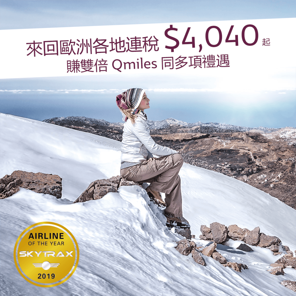 與世界 如初見!去旅行點去都唔會厭!把握平飛坐Skytrax 2019全球最佳航空出發!飛歐洲連稅低至$4,040咋!仲賺雙倍Qmiles同多項禮遇! – 卡塔爾航空 (優惠至9月15日)
