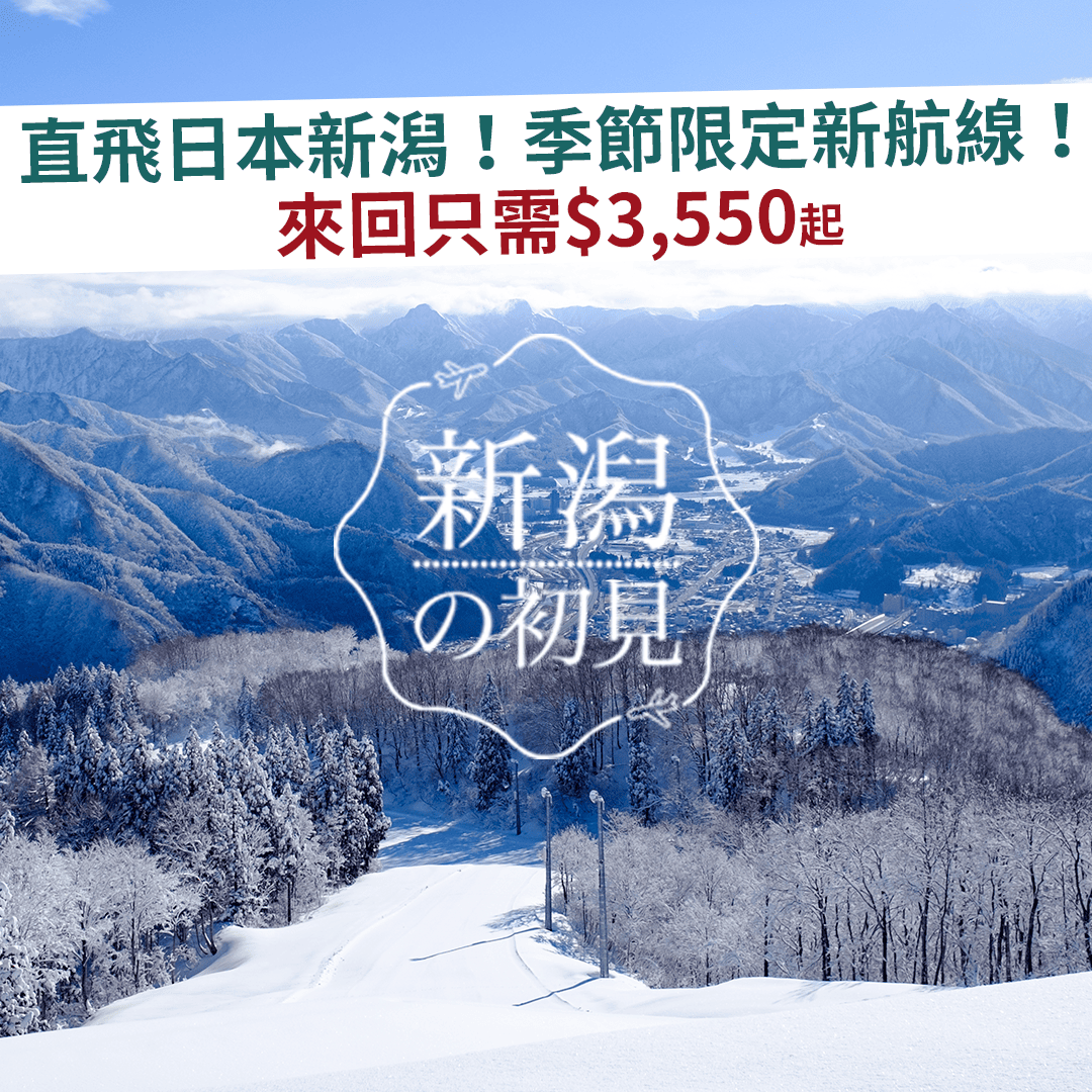 香港直飛日本新潟來回只需$3,550起,連稅$4,146起