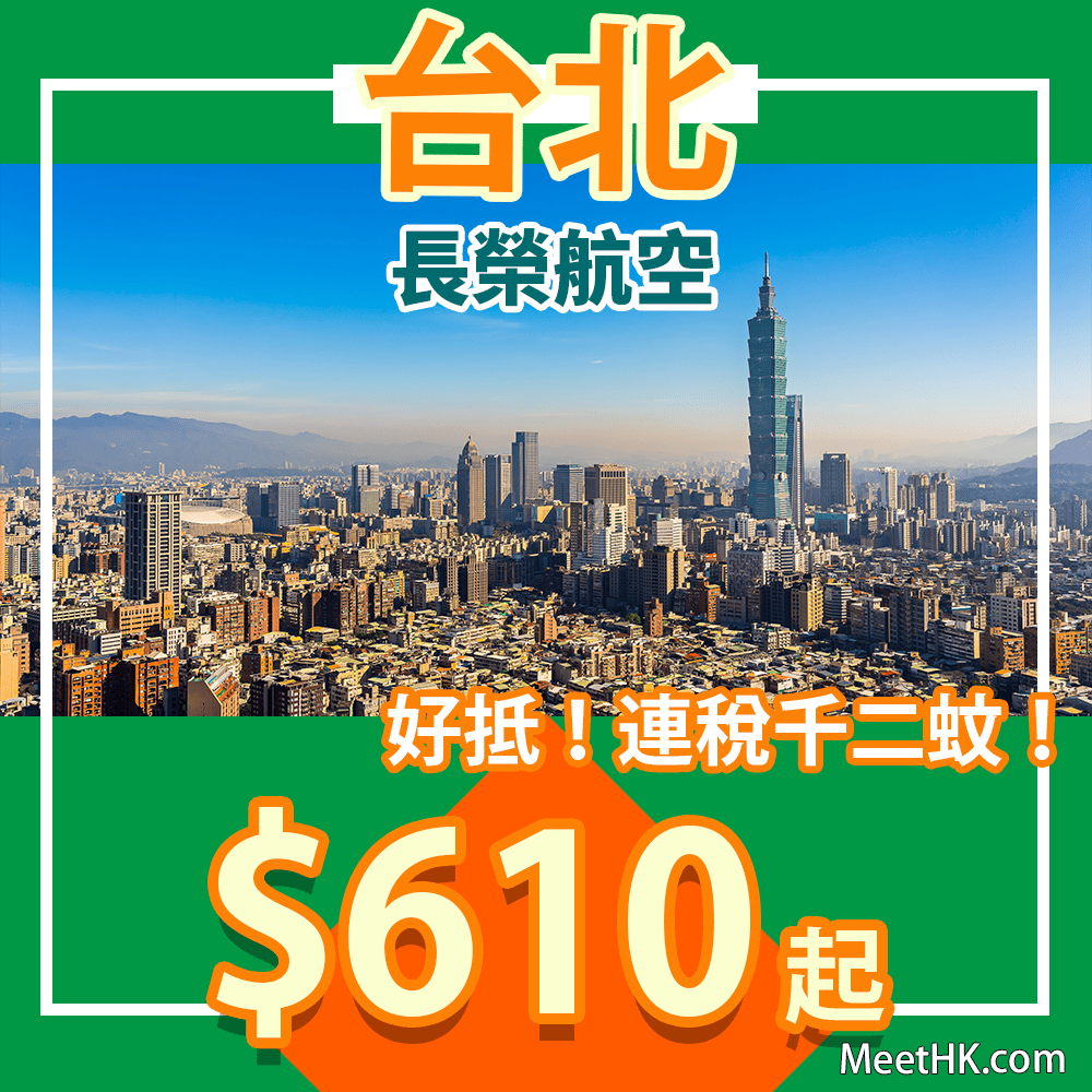 好抵!長榮平飛台北!連稅千二蚊!香港往返台北只需$610起 – 長榮航空 (優惠至9月30日)