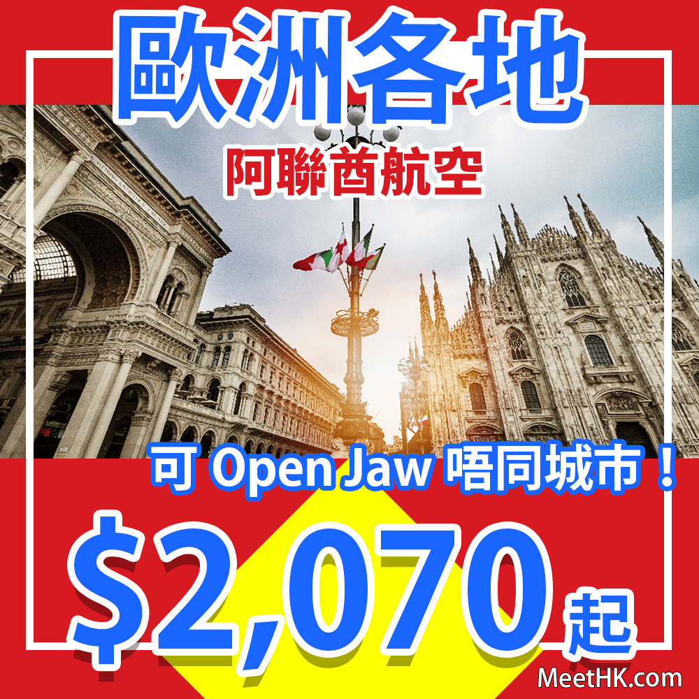 阿聯酋航空歐洲優惠!明年6月前出發!Open Jaw各大熱門城市!香港往返歐洲各地只需$2,070起(可stopover杜拜) – 阿聯酋航空 Emirates (優惠至12月16日)