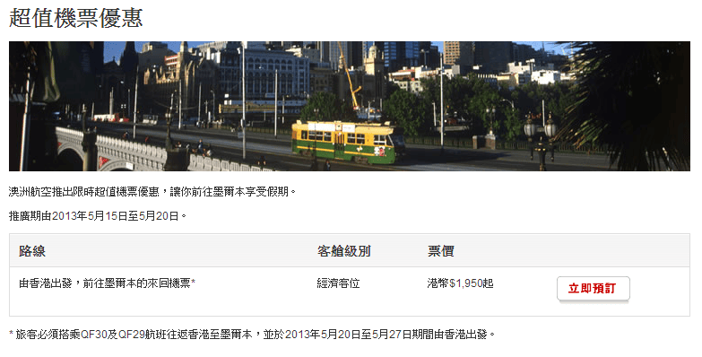 Last Minute優惠!香港往返墨爾本只需$1,990 – 澳洲航空 (優惠至5月20日)