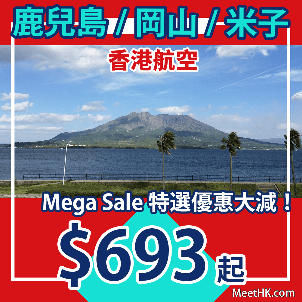 港航Mega Sale!連稅千二!日本特選優惠!限10kg寄艙行李!香港往返鹿兒島、岡山、米子只需$693起 – 香港航空 (優惠至9月30日)
