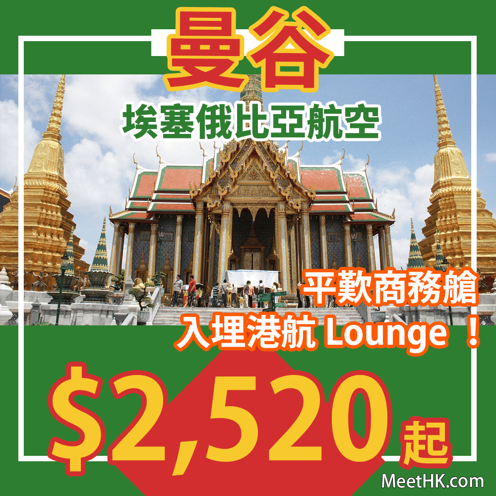 香港往返曼谷商務艙只需$2,520起,連稅$3,056起