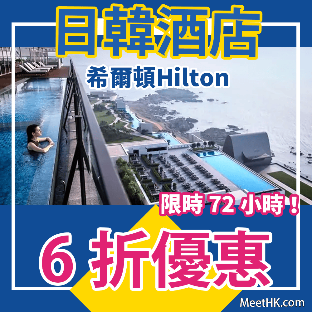72小時限時搶!Book日韓平酒店!明年2月3日前入住!希爾頓Hilton日本韓國酒店6折優惠! (優惠至9月27日3pm)