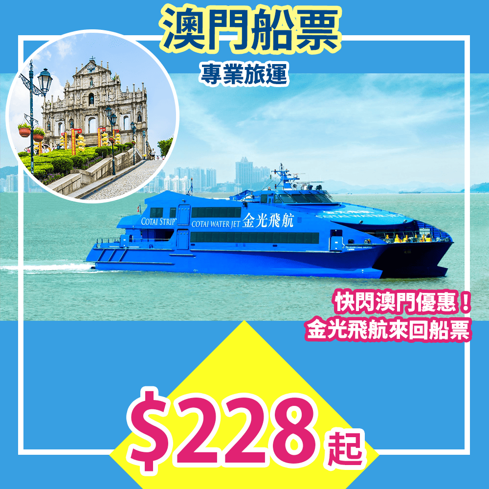 快閃平遊澳門!有抵價船飛呀!又平多少少!金光飛航來回香港至澳門船票只需$228起 – 專業旅運 (優惠至10月6日)