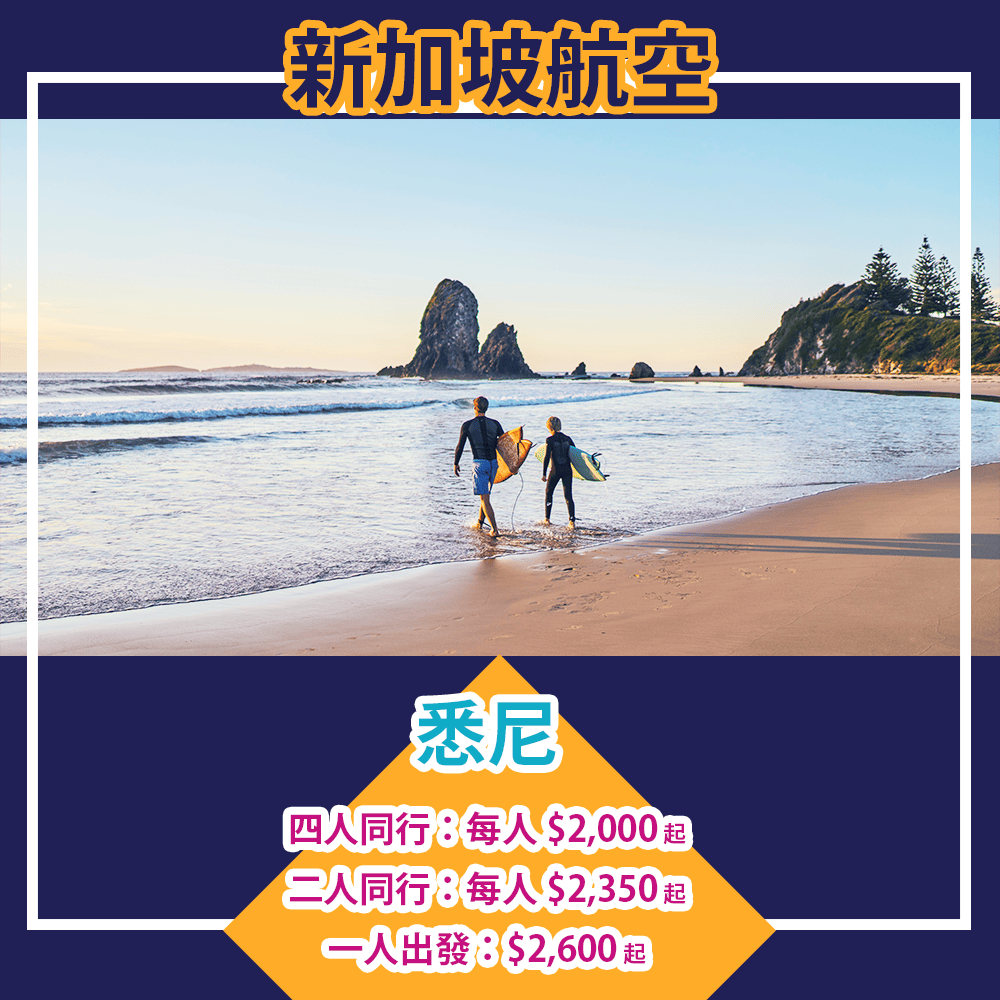 四人同行:悉尼每人$2,000起,連稅$2,935起