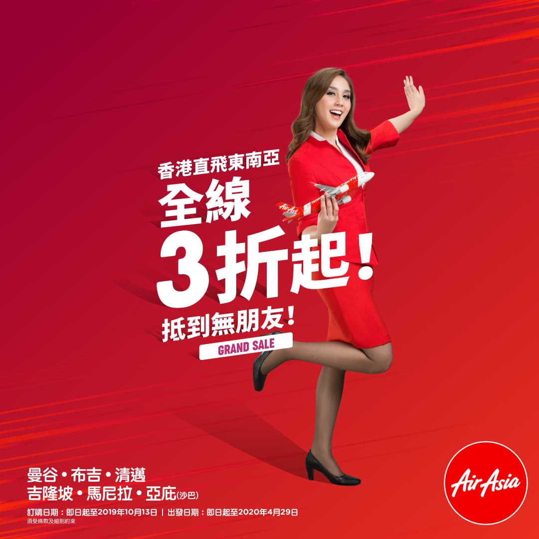 AirAsia Year End Grand Sale推出東南亞平飛,直飛東南亞全線3折起,喺時候出發!