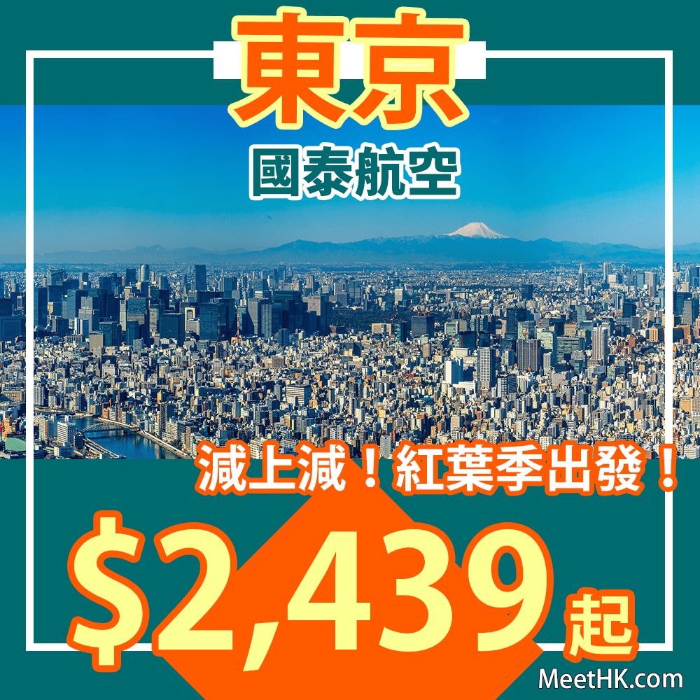 減上減!國泰東京秋冬優惠!紅葉季出發!香港往返東京只需$2,282起 – 國泰航空 (優惠至10月31日)