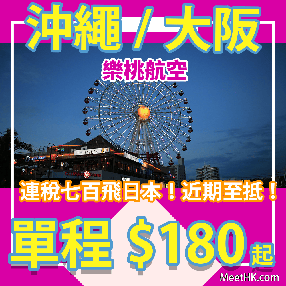 嘩!連稅七百飛日本!近期至抵!限時48小時!香港飛沖繩單程只需$180起,大阪$220起 – 樂桃航空 (優惠至10月16日)