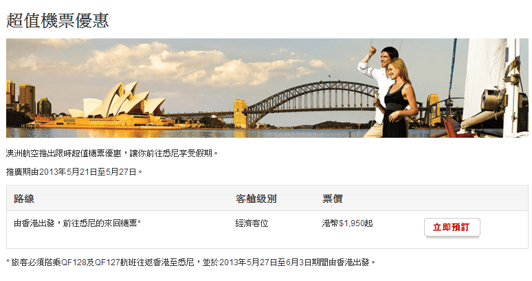 今朝國泰fanfares有悉尼Last Minute優惠,澳航一如之前兩個星期繼續推出優惠追擊返fanfares