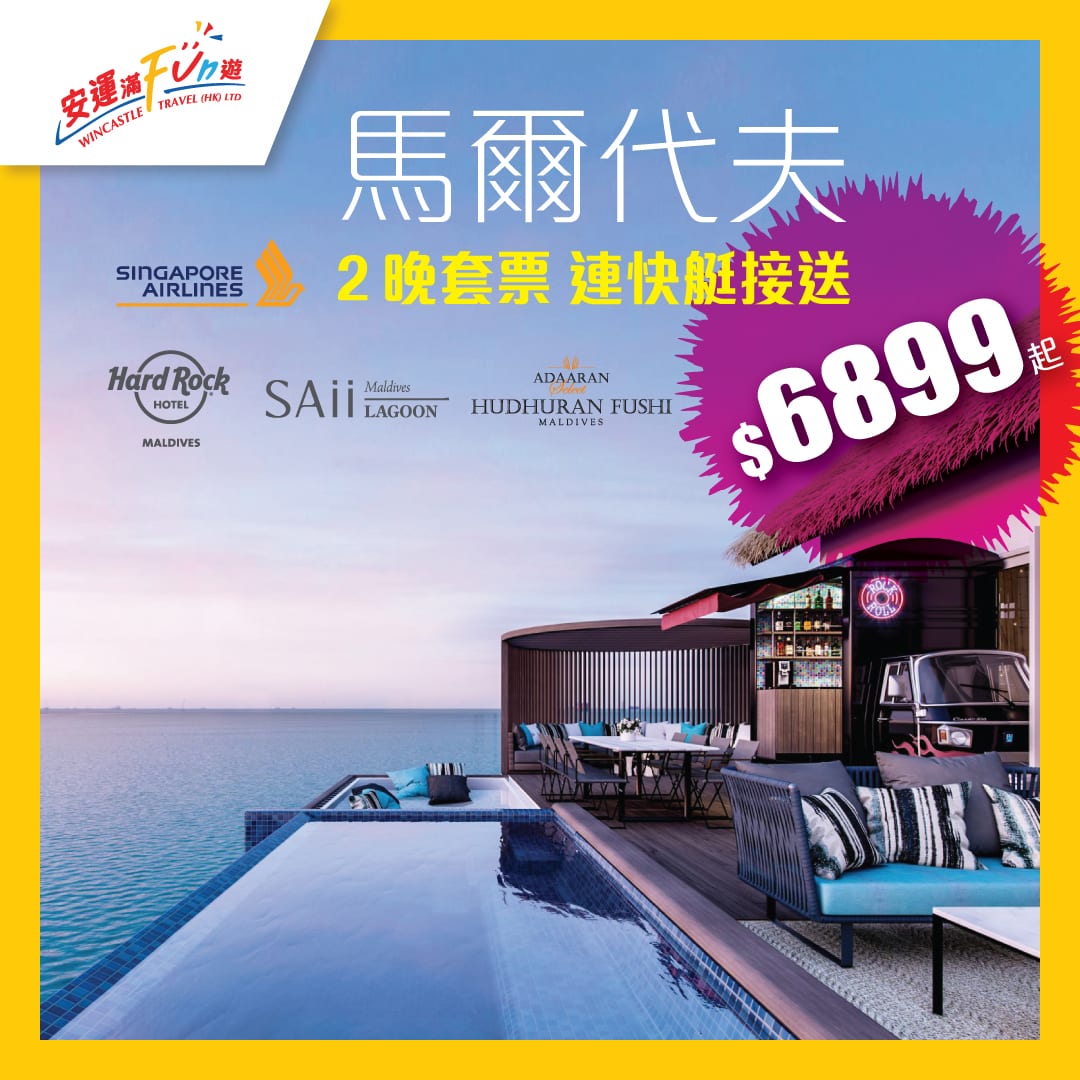 正呀!馬爾代夫套票嚟啦!坐星級新航出發享受陽光與海灘!入住新酒店Hard Rock或Hilton旗下Curio Collection!來回機票連2晚酒店每位只需$6,899起 – 安運滿Fun遊
