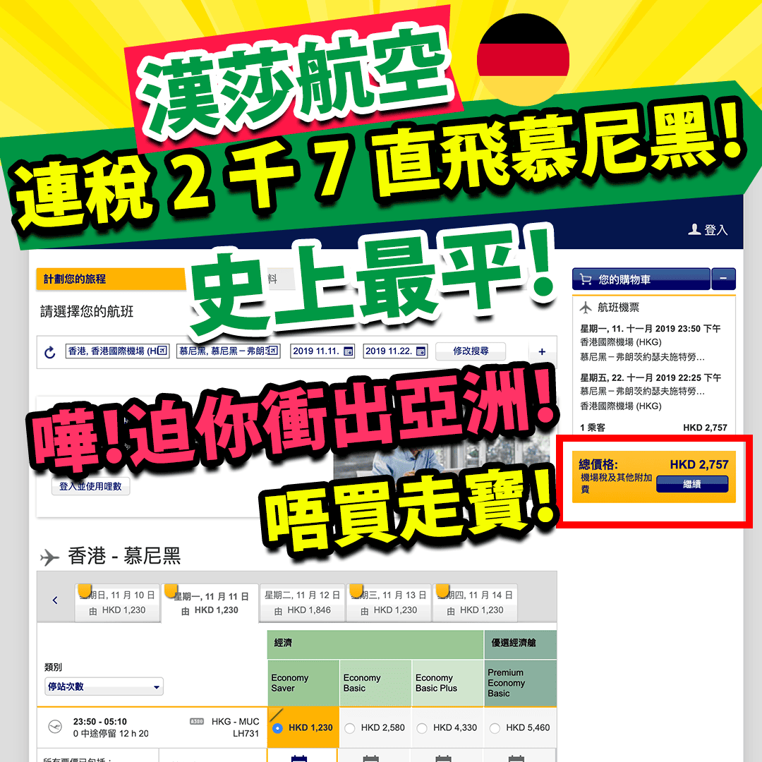 嘩嘩嘩!!漢莎航空直飛慕尼黑連稅只係2千7!2千7!2千7!係連稅呀!