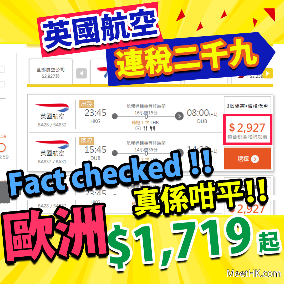 嘩嘩嘩!連稅2千9飛歐洲!Fact checked!係真嘅!