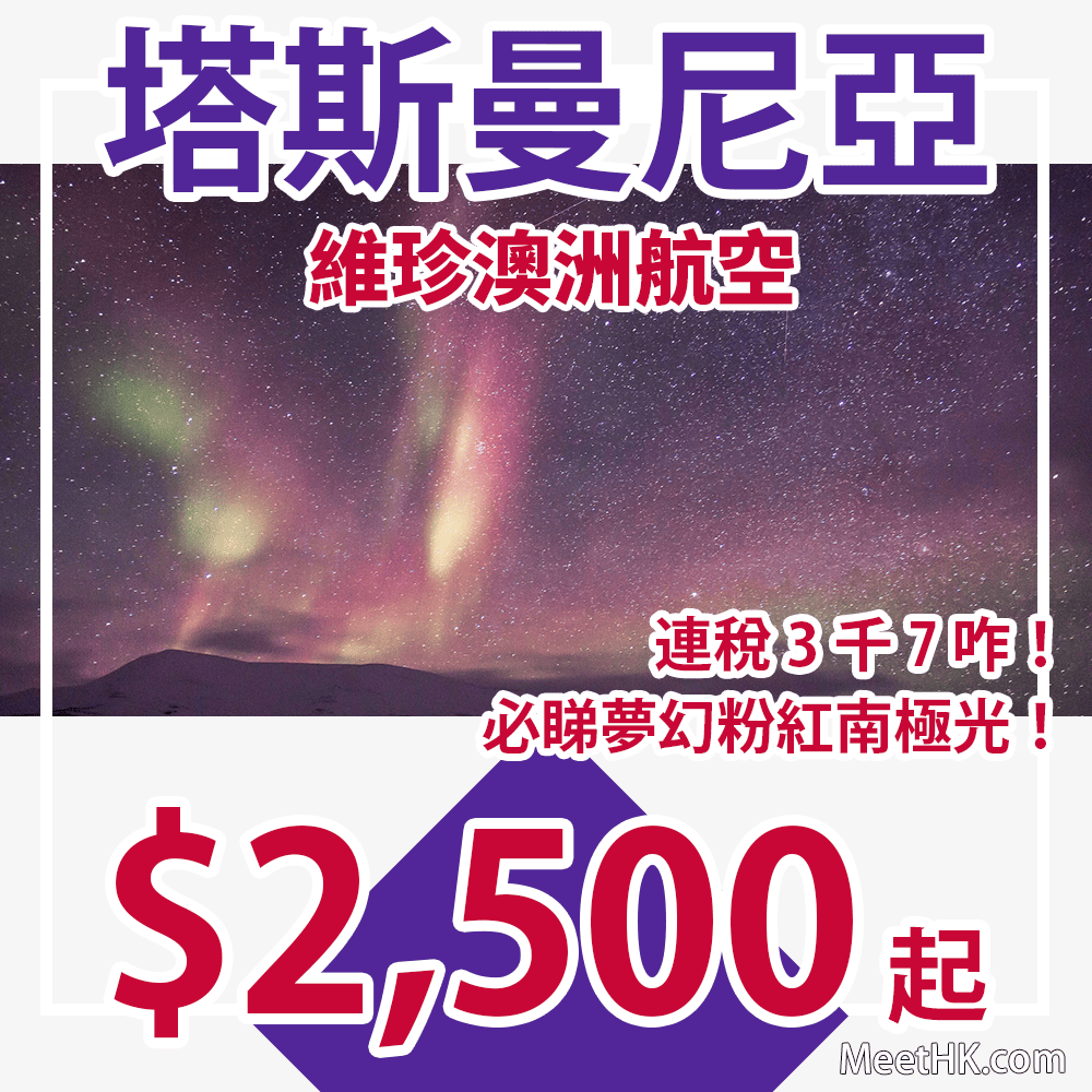 勁減!平飛塔斯曼尼亞!連稅3千7咋!必睇夢幻粉紅南極光!明年6月26日前出發!香港往返塔斯曼尼亞只需$2,500起 – 維珍澳洲航空 (優惠至11月12日)