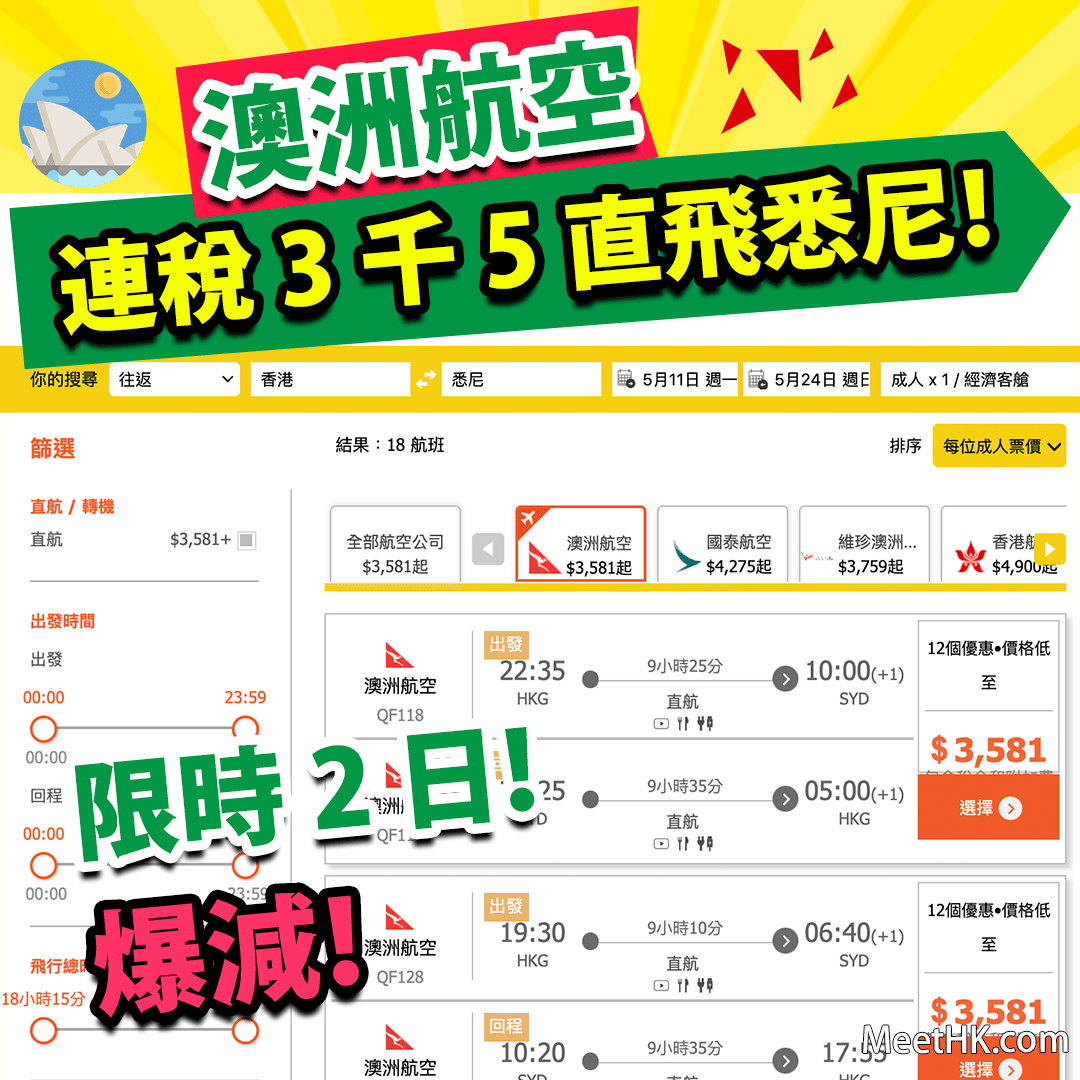連稅3千5直飛悉尼!呢個價唔係時時有!5月份出發!