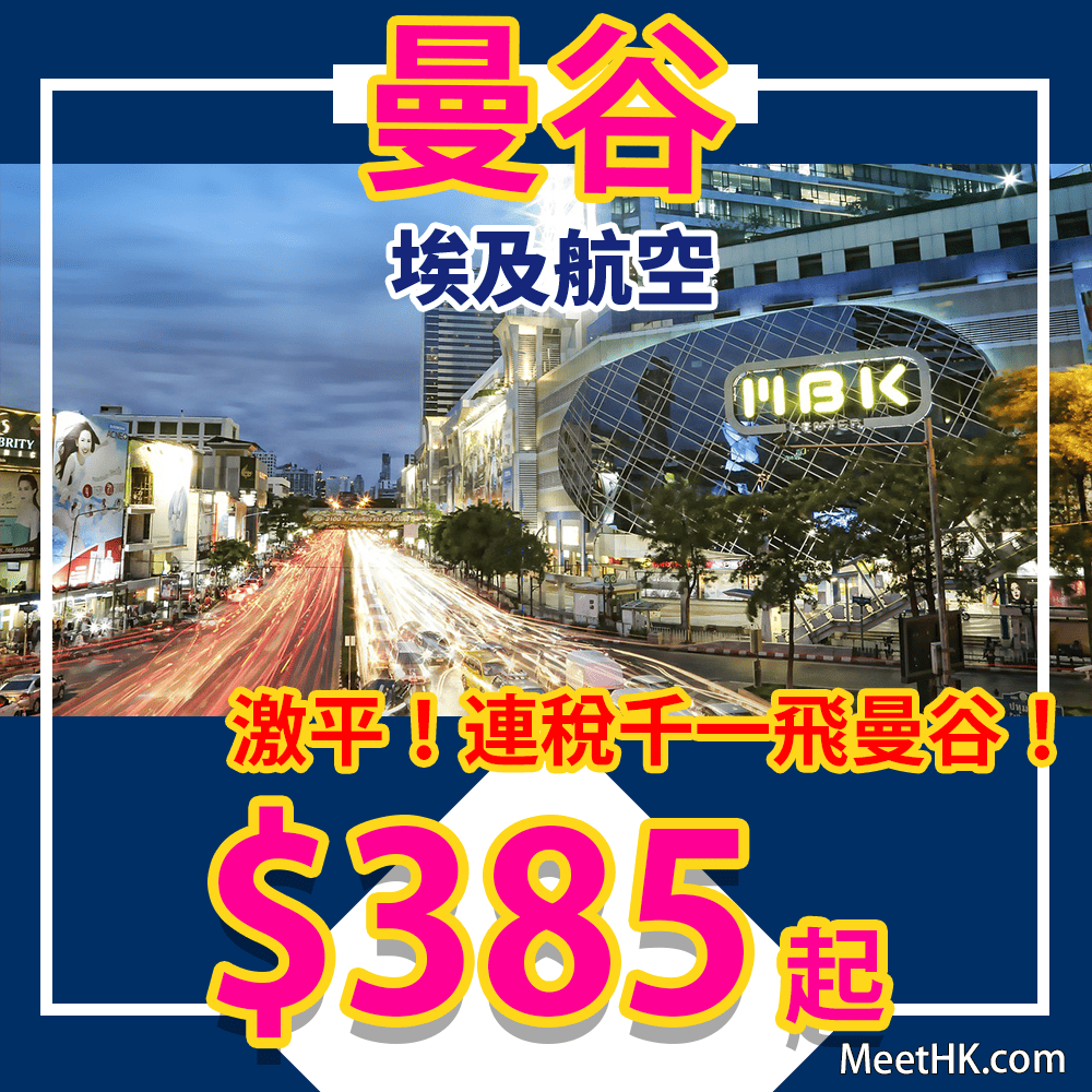 激平!連稅千一飛曼谷!首賣至1月出發!香港往返曼谷只需$385起 – 埃及航空 (優惠至11月27日)