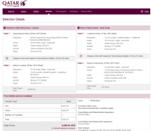 以香港往返倫敦為例,最平機票連稅只需$6,858