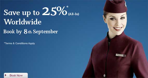 3天特惠 – 卡塔爾航空机票七五折優惠 – 卡塔爾航空Qatar Airways (至9月8日)