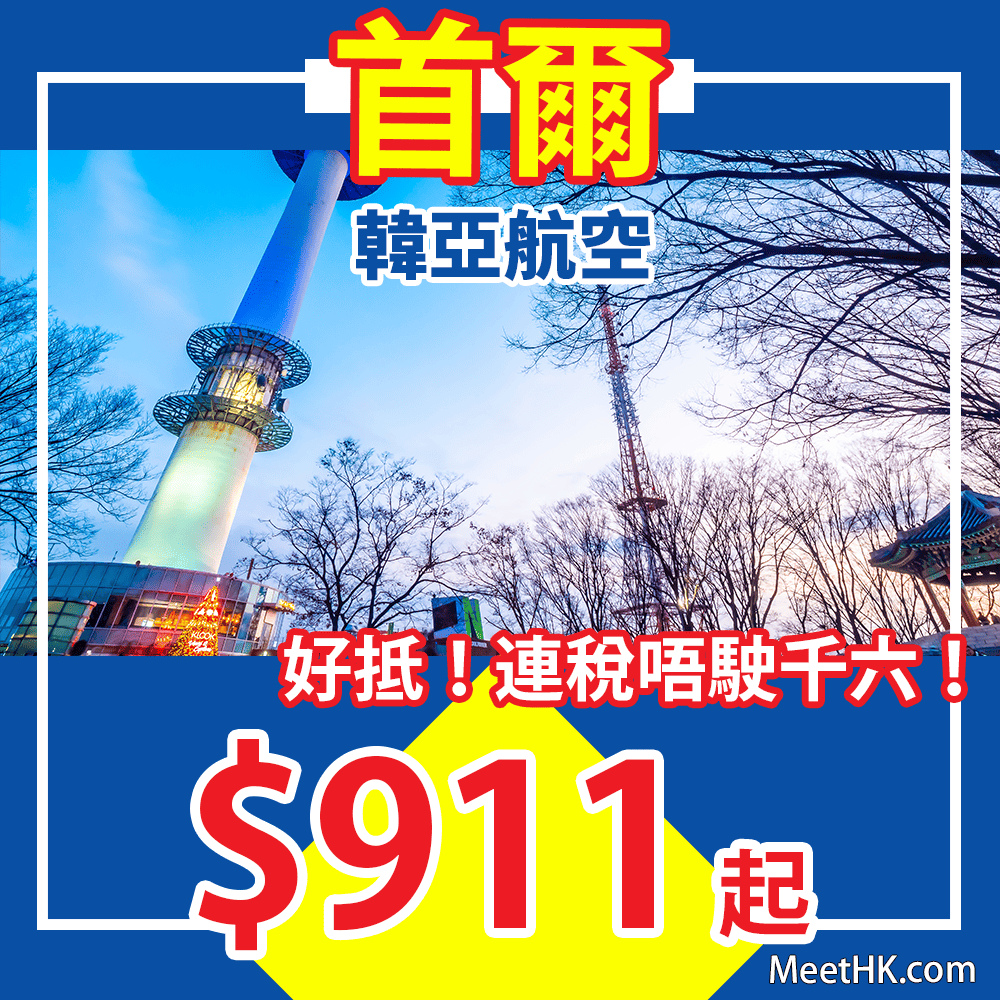 香港往返首爾只需$911起,連稅$1,592起,好抵!