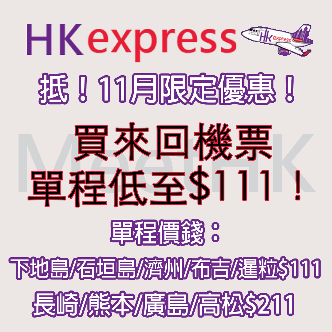 有興趣可以係今晚12點(11月11日0:00)上HK Express官網睇睇!