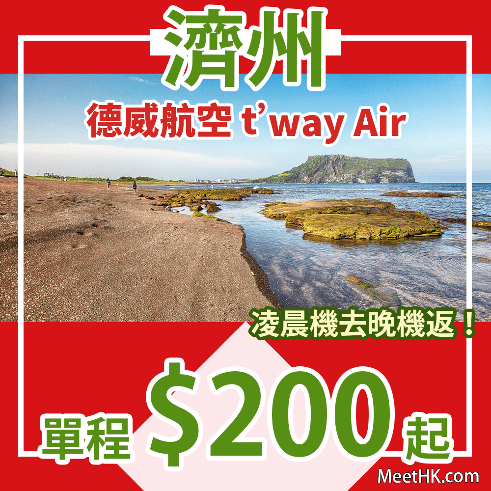 凌晨機去晚機返!明年3月28日前出發!香港飛濟州單程只需$200起 – 德威航空 T’way Airlines (優惠至12月15日)