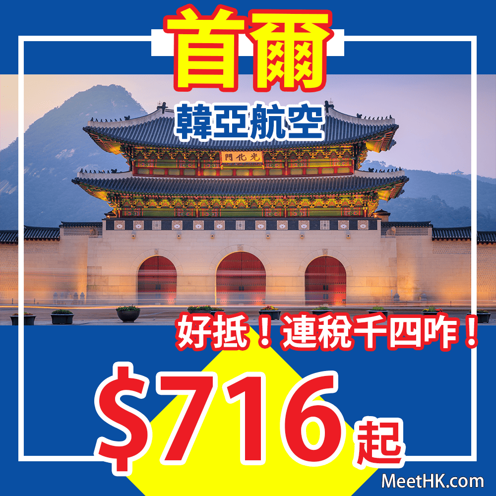 香港往返首爾只需$716起,連稅$1,400起,呢個價限午去早回!