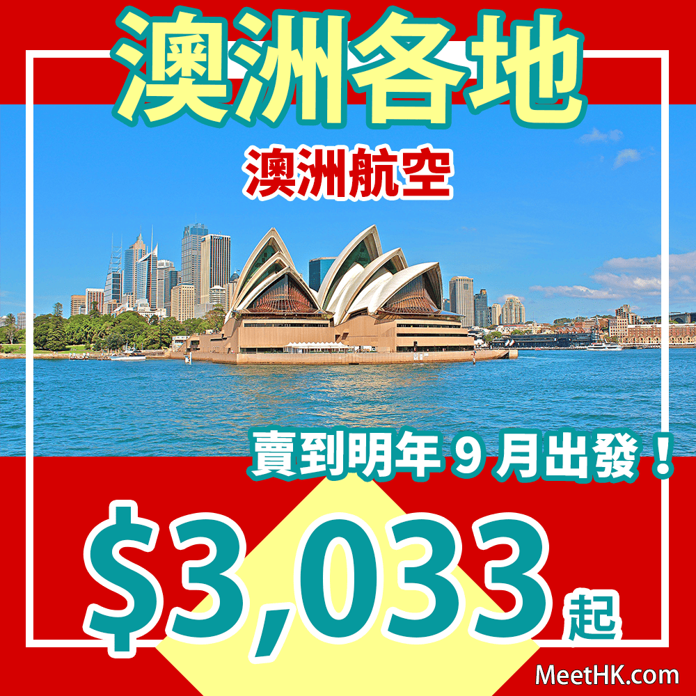 澳航澳洲優惠!賣到明年9月出發!香港往返澳洲各地只需$3,033起 – 澳洲航空 (優惠至12月5日)