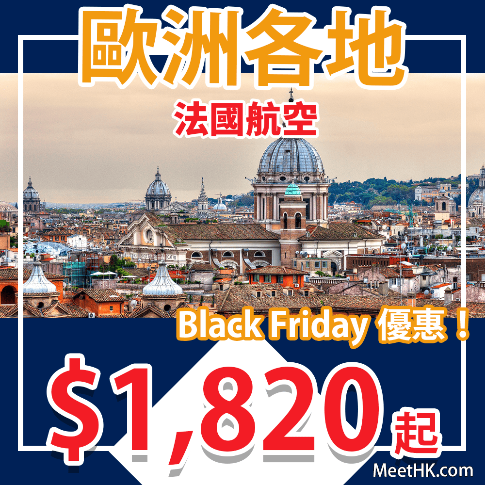 法航Black Friday優惠!飛歐洲連稅3千6起!包23kg行李!香港飛歐洲各地來回只需$1,820起 – 法國航空 (優惠至12月3日)