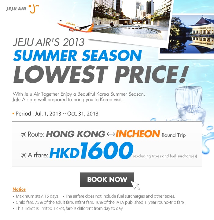 濟州航空推出左7月至10月飛首爾既機票優惠,當中暑假旅遊旺季都有得平