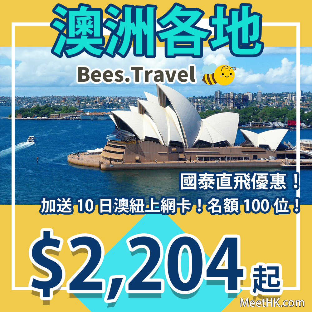 國泰直飛澳洲優惠!加送10日澳紐上網卡!名額100位!明年11月14日前出發!國泰直飛澳洲各地來回只需$2,204起 – Bees.Travel (優惠至12月18日)