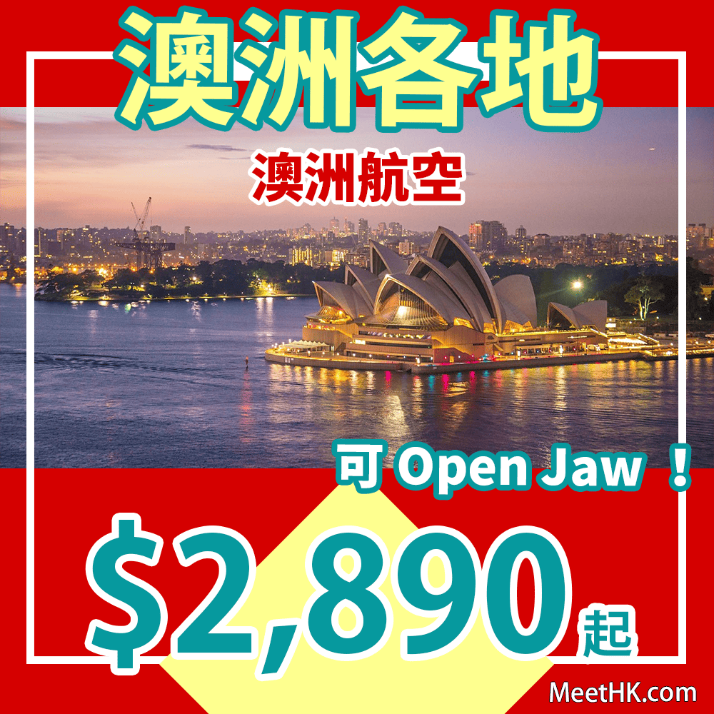 澳航澳洲優惠!可Open Jaw!明年9月前出發!香港往返澳洲各地只需$2,890起 – 澳洲航空 (優惠至12月18日)